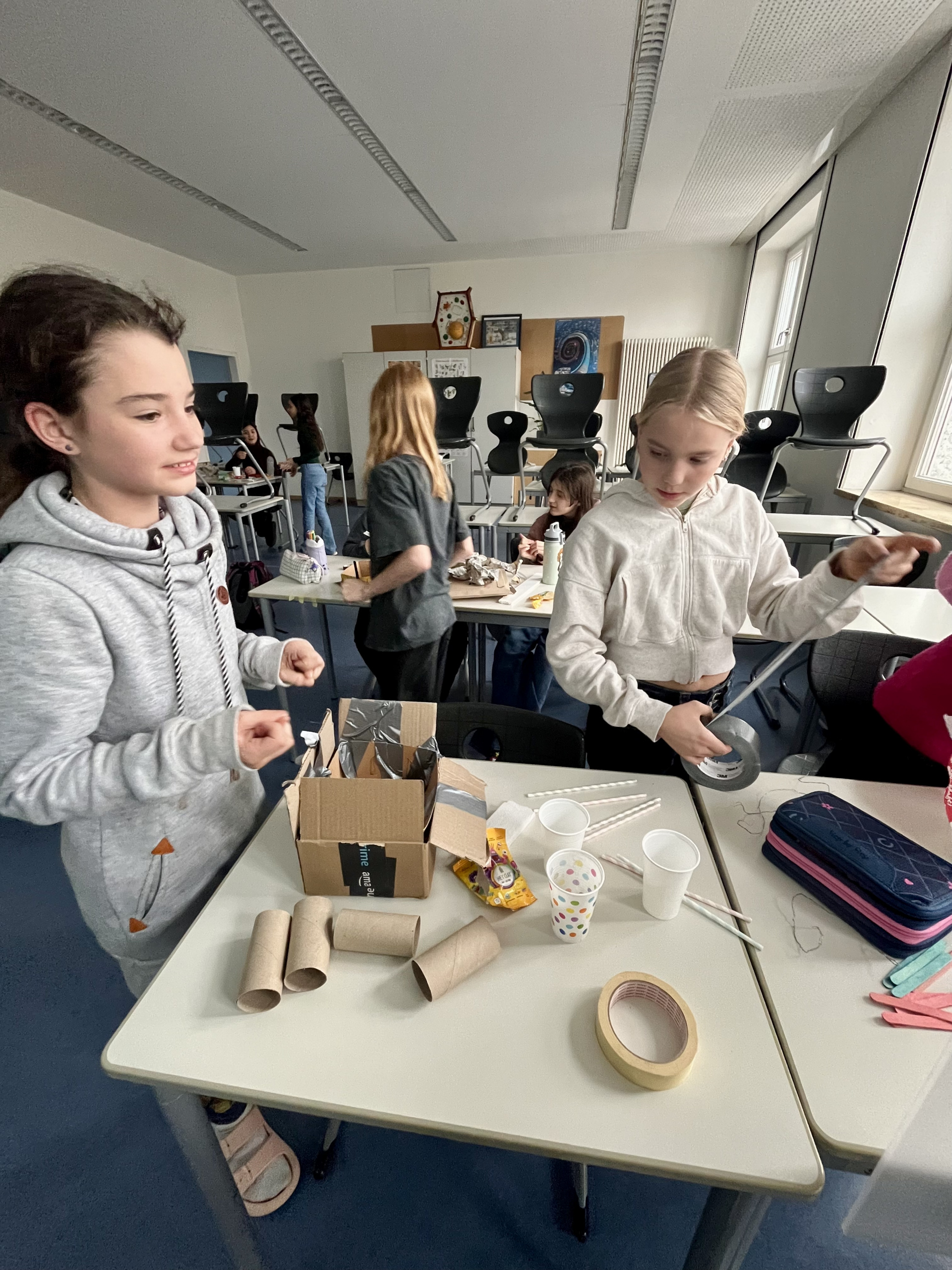 In jeder Klasse haben wir Umweltbeauftragte, die darauf achten, dass Fenster geschlossen und technische Geräte ausgeschaltet sind, wenn wir das Klassenzimmer verlassen. Zusätzlich finden in verschiedenen Jahrgangsstufen regelmäßig spannende Workshops zum Thema Umweltschutz statt.