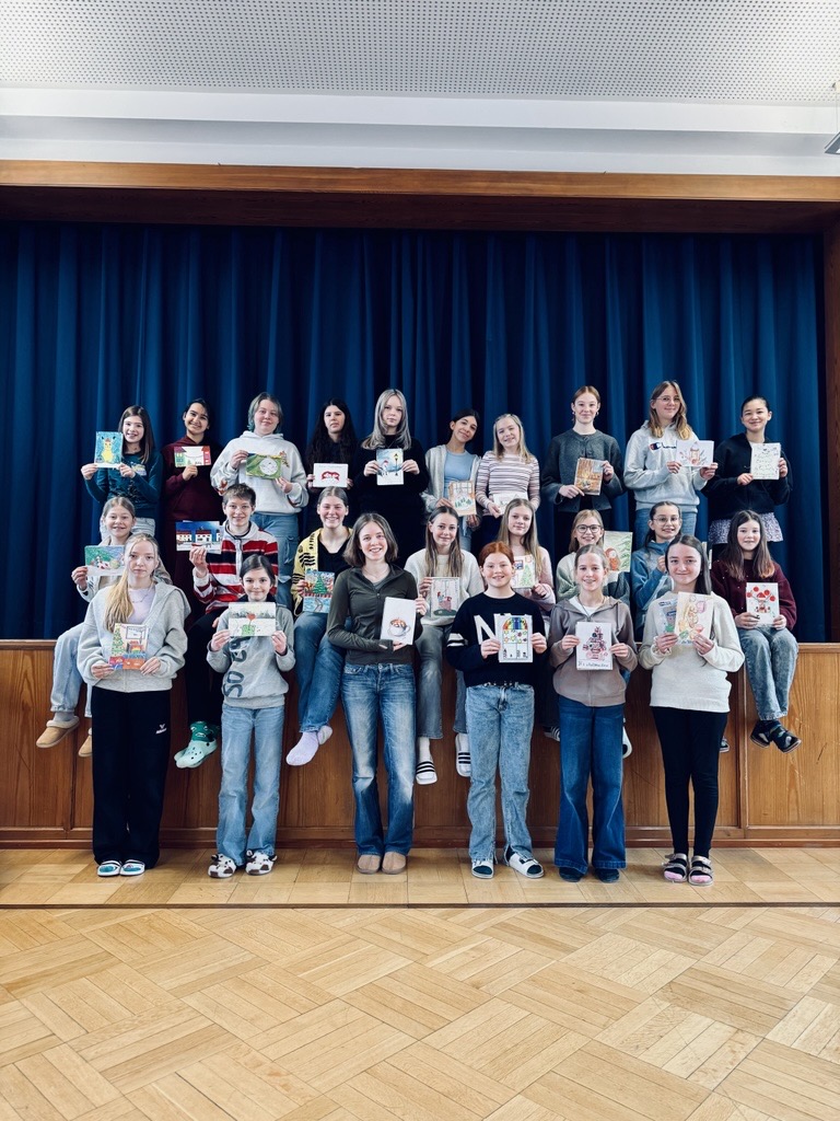 Wenn es einen Lesewettbewerb im Fach Deutsch gibt, dann können wir auch einen im Fach Englisch veranstalten. Denn schließlich ist Englisch auf Reisen, im Alltag, in Songs und der Werbung und natürlich in der Arbeitswelt nicht mehr wegzudenken. Um die Sprachkompetenz unserer Schülerinnen zu fördern, haben wir diesen Lesewettbewerb ins Leben gerufen. Zunächst wurden in jeder 7. Klasse zwei Klassensiegerinnen bestimmt. Auf der Bühne in unserer Aula lasen die acht Kandidatinnen heute zunächst einen selbst gewählten und im Anschluss daran einen Fremdtext vor. In der Jury saßen Englischlehrkräfte, die am Ende eine schwierige Entscheidung treffen mussten. Luisa lag am Ende knapp vorne und gewann unseren englischen Lesewettbewerb. Herzlichen Glückwunsch! Die ersten drei Gewinnerinnen durften sich ein englisches Buch aussuchen. Ein großer Dank geht hier an die Erlebnisbuchhandlung Didactus in Kempten, die uns die Bücher gesponsert hat.